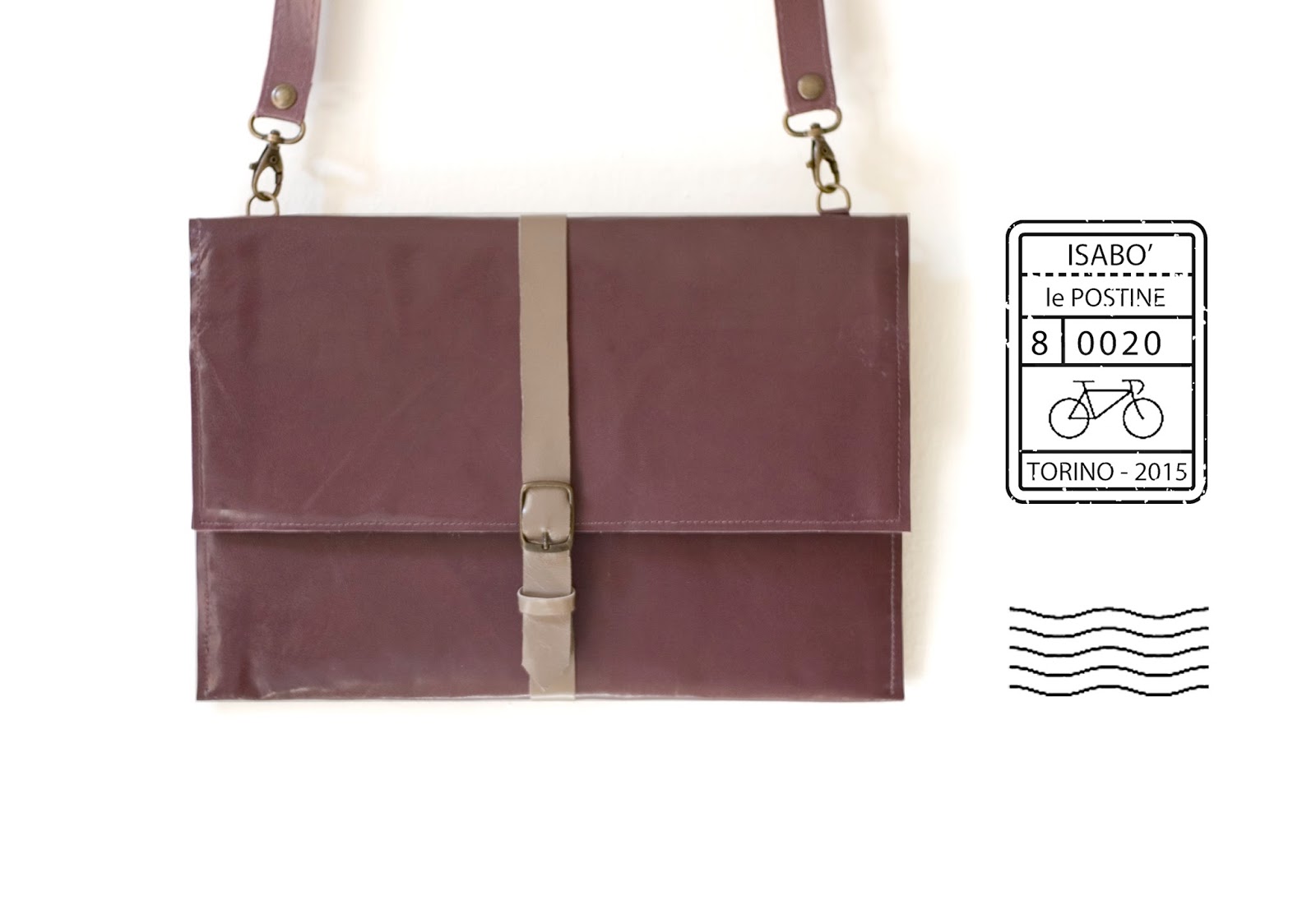 | Postina in pelle Malva scuro con laccio tortora - 30x20cm + tracolla regolabile |